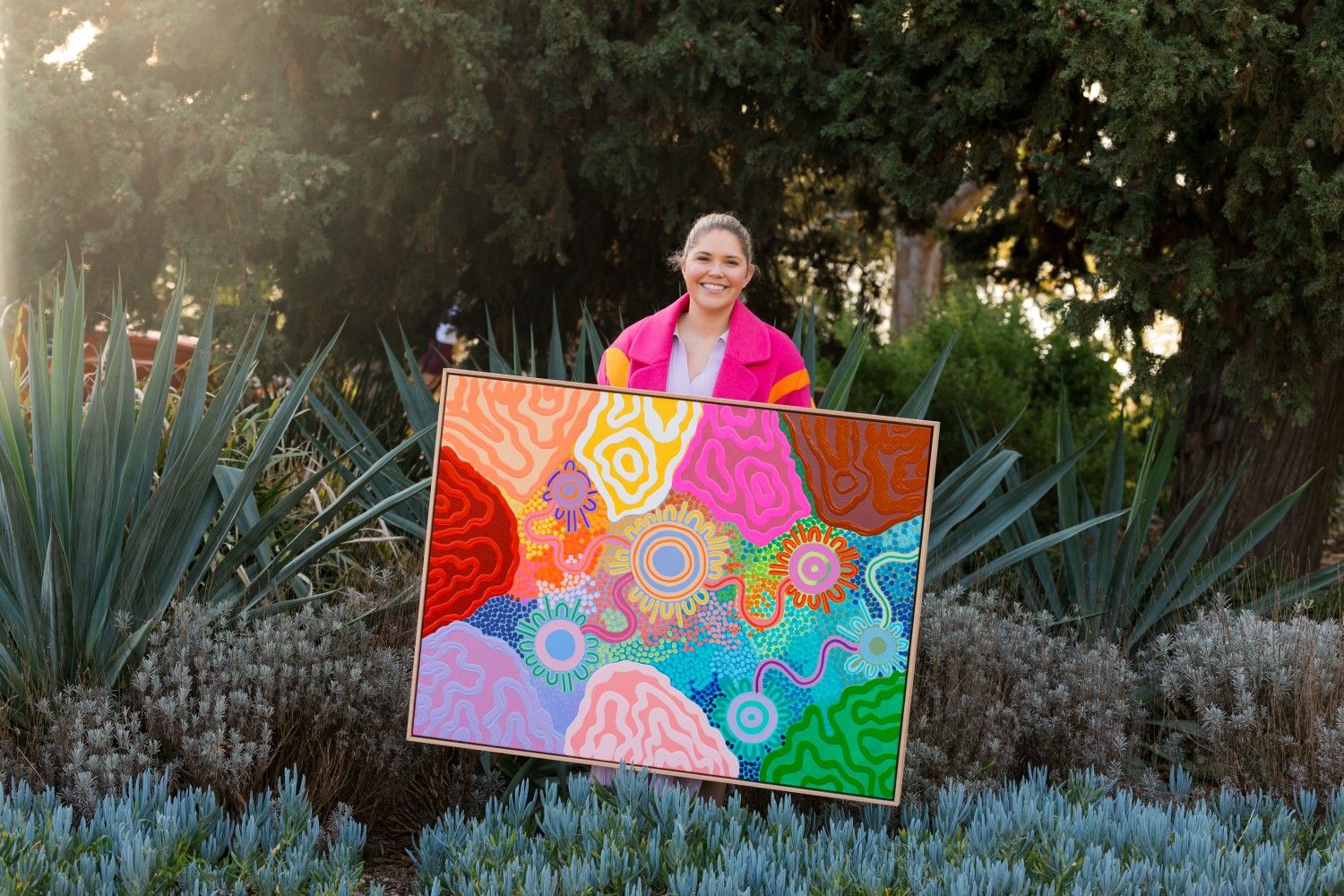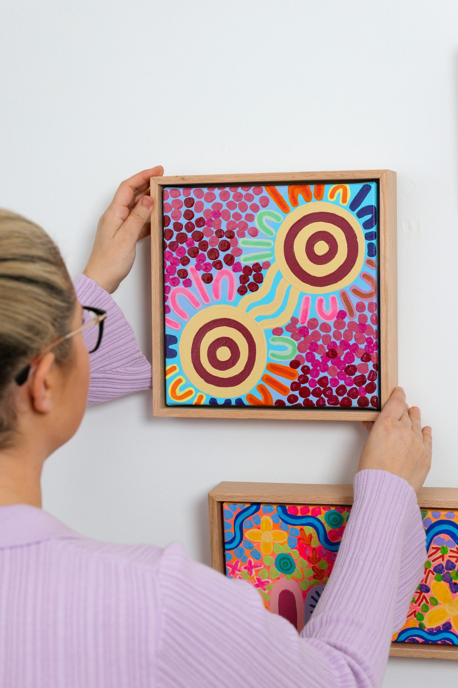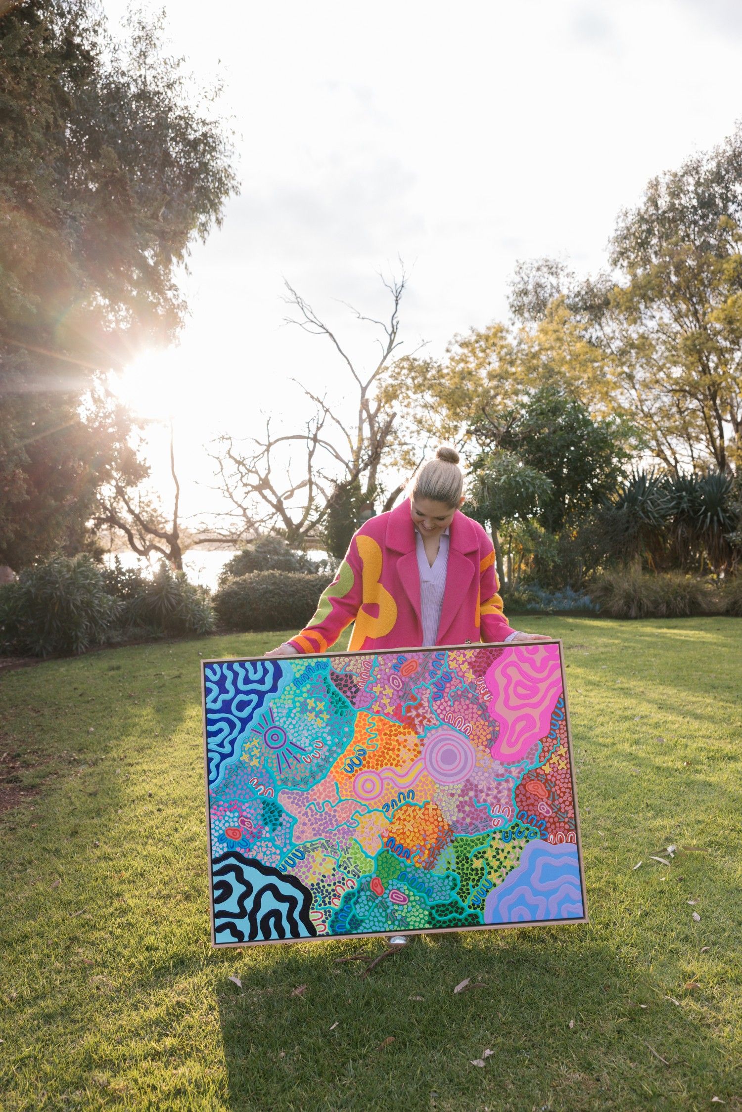 An emerging contemporary artist, Aimee's vibrant approach to life coupled with her strong ancestral and cultural identity allows her to create unique, intricate and eye-catching artworks on canvas. With a mixture of bright colours and textures, Aimee explores modern society through the looking glass of the world's oldest living culture.