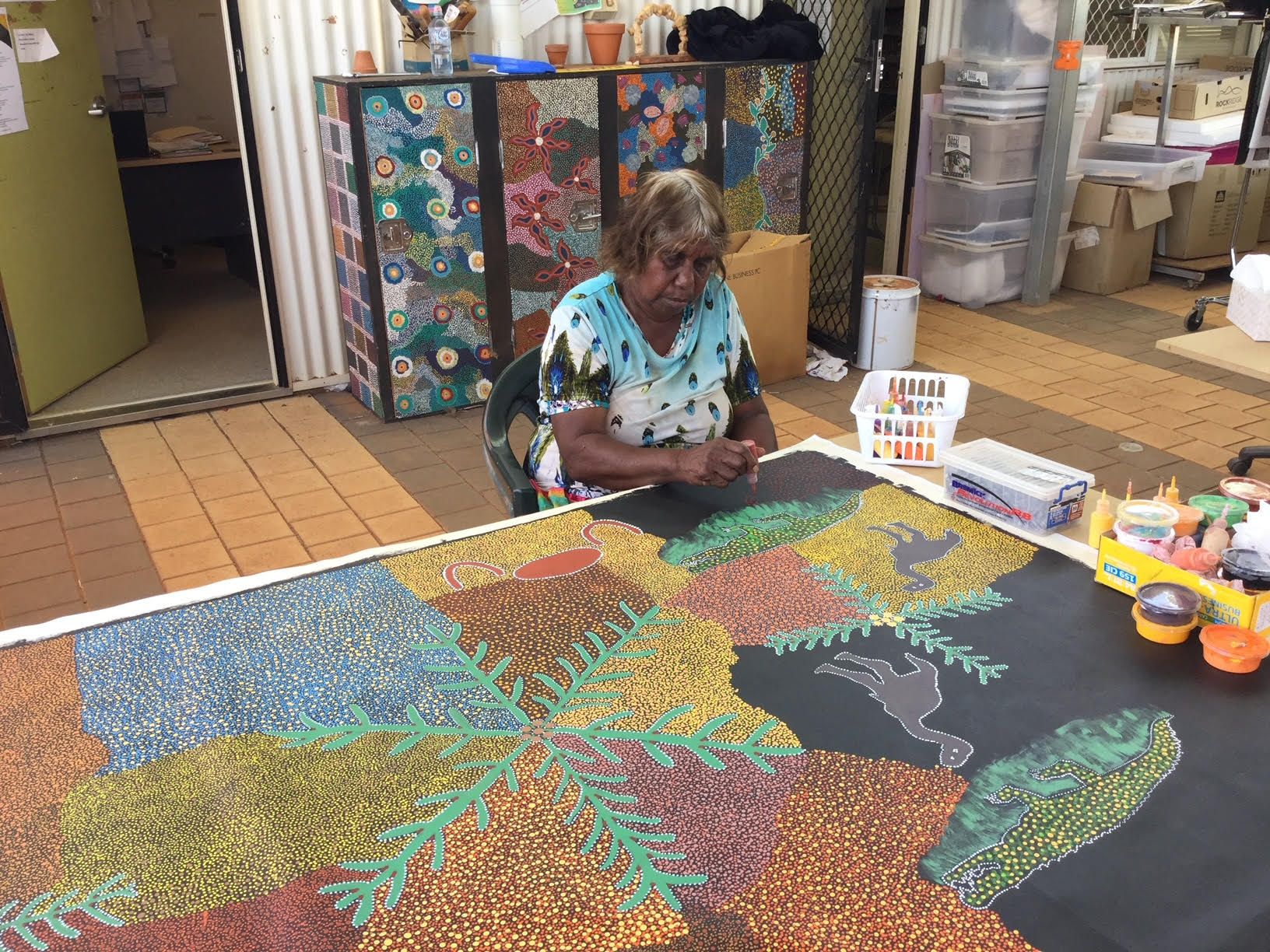 The Engawala Art Centre provides a place where Artists can create artworks and a location where the Artists can have their artworks displayed and sold.