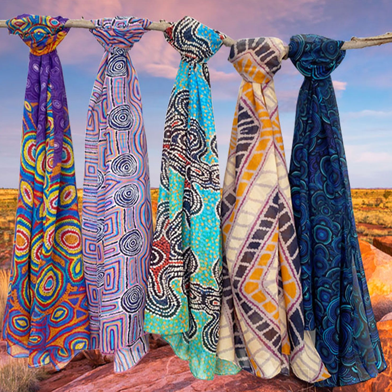 Mainie is a proudly Aboriginal-owned Australian fashion business and an approved Dealer Member of the Indigenous Art Code, committed to ethical and sustainable practices. Through formal licensing agreements with Aboriginal-owned arts centers, Mainie acquires authentic Dreamtime designs, ensuring that each artist retains copyright and receives royalties for their work. By supporting talented Aboriginal women from remote desert communities, Mainie helps them achieve financial independence while preserving their cultural heritage. Mainie’s luxurious collection of silk and Australian Merino wool scarves reflects impeccable standards in ethical sourcing and sustainability, creating wearable art with deep cultural meaning and timeless appeal.