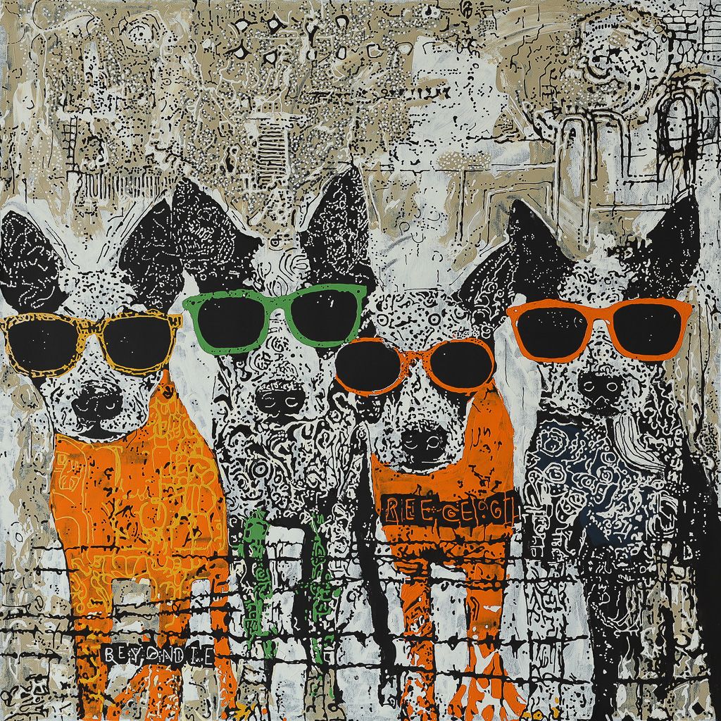 Dr. Reece George is a Martu artist earning rapid recognition for paintings that bridge ancient culture with modern flair. Born in the Western Desert and now based in New South Wales, he brings the depth of one of the world’s oldest living cultures into contemporary fine art. His canvases burst with desert ochres, shadowy blacks and sunset oranges, animated by cheeky dingoes in sunglasses and emus with attitude. Each vibrant composition weaves Indigenous storytelling with a modern aesthetic, creating a visual language that resonates with profound cultural and emotional depth. Collectors across Australia and internationally have been quick to take note of George’s work. Represented by prestigious galleries in Sydney, Brisbane and Melbourne, and lauded by press like The Urbanite, he has swiftly established himself as an artist of significance in the Aboriginal art world… prestigious yet playful, and unmistakably authentic.