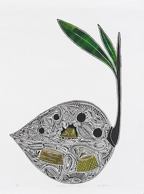 His practice as an artist, and storyteller of his and his people’s Culture, leans towards a mastery of a range of printmaking techniques (relief printing, intaglio and pochoir).