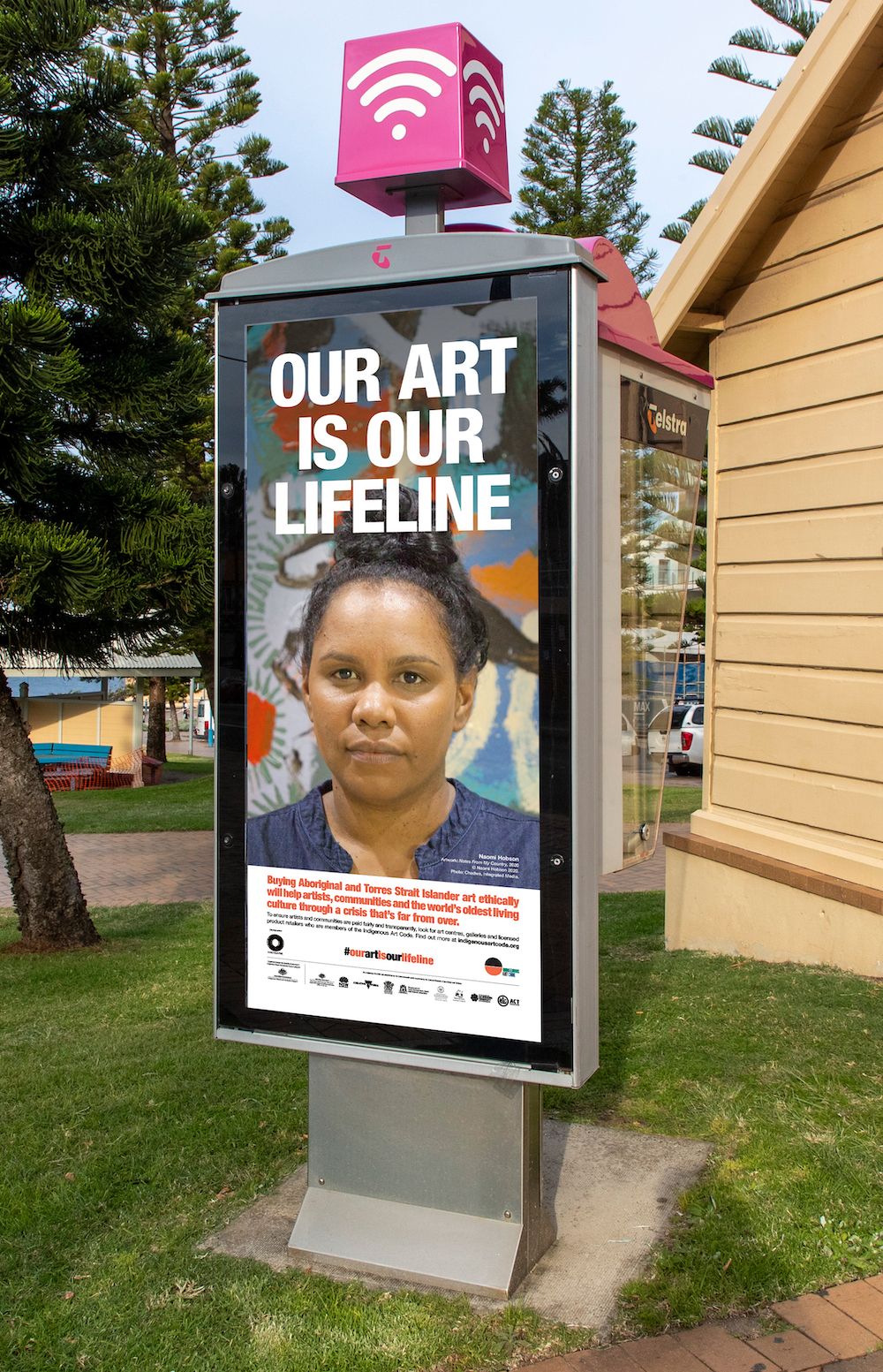 With the support of the Macquarie Group and the Australia Government’s Indigenous Visual Arts Industry Support program, in 2020 the IartC launched a national campaign to support the Indigenous art industry through the COVID-19 crisis and to promote fair and ethical purchasing of Aboriginal and Torres Strait Islander art. Including national press and outdoor advertising, social media and coverage in national media outlets, the campaign highlighted artist voices from around the country.
