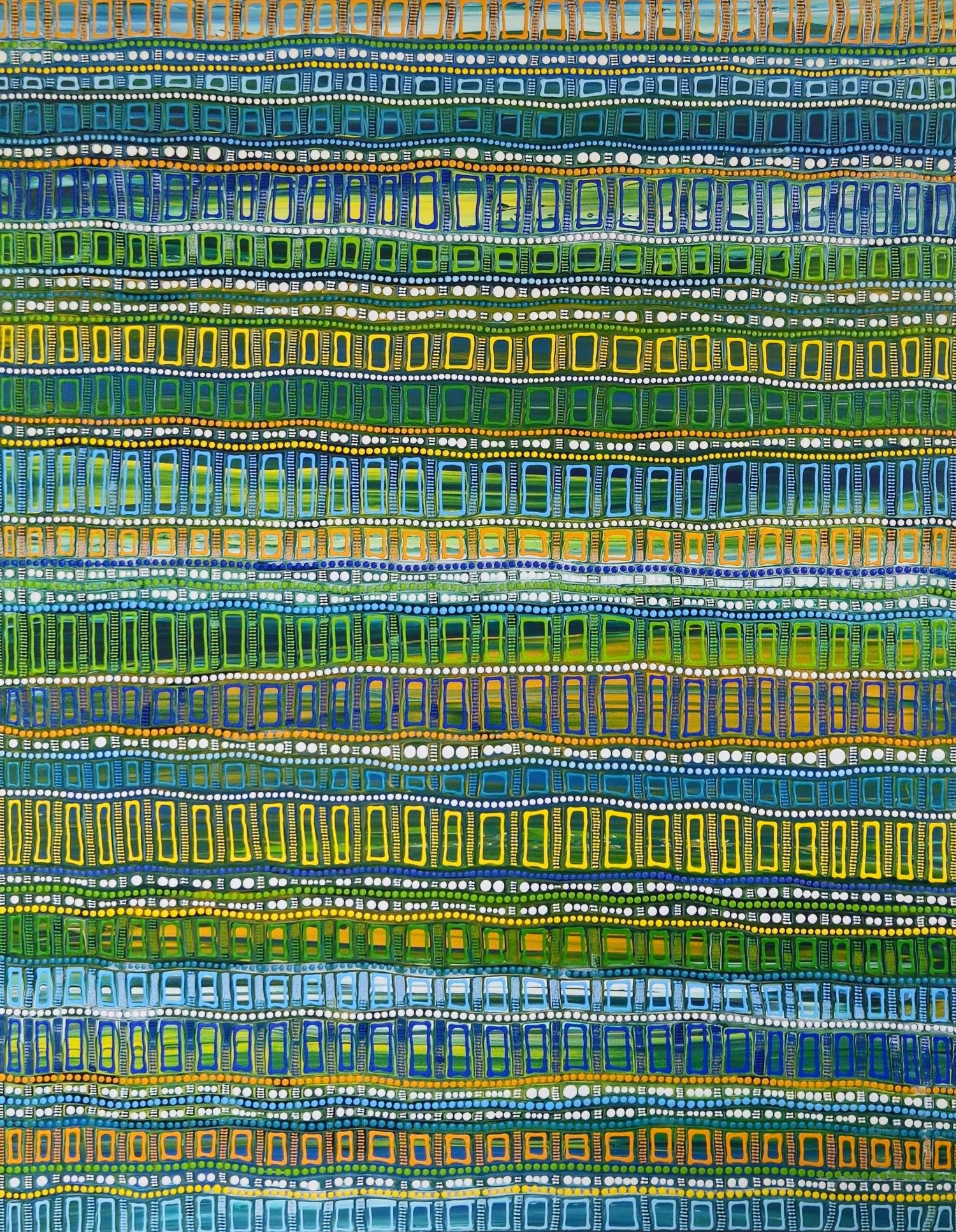 I developed an appreciation for colors, textures, cultural traditions and stories. I was in my thirties when I began painting, my first inspiration was my childhood memories then moving onto personal inspiration as an indigenous woman and mother raising two daughters. At present my inspiration is my life’s journey over the years appreciating family, country and cultural heritage.